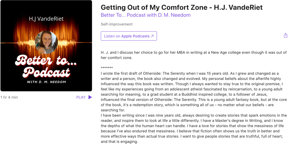 I am so grateful for the opportunity to talk to D.M about Otherside: The Serenity. She asked me really great questions about the book, and the experience of being a Christian at a Buddhist-inspired university.
